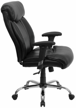The Hercules Big and Tall Leather Chair features a thick, contoured cushion for greater support and maximum comfort. The chair is upholstered in rich black LeatherSoft. LeatherSoft is leather injected with polyurethane for added softness and improved durability. The Hercules GO-1235-BK-LEA chair is handsome enough for use in any conference room or executive office. The chair's design includes many of the most popular features such as multiple adjustments and carpet casters. This chair normally ships in 1 business day and shipping is free to the lower 48 states.
