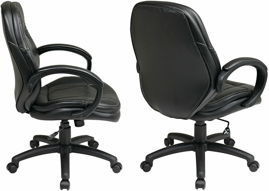 This faux leather managers chair from Office Star products is available in durable, black faux leather upholstery.