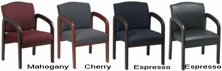 This office guest chair from office star features stain resistant commercial grade fabric upholstery available in (100) different colors and patterns plus your choice of (4) different wood finishes so that your chair is guaranteed to compliment any office or waiting room décor.