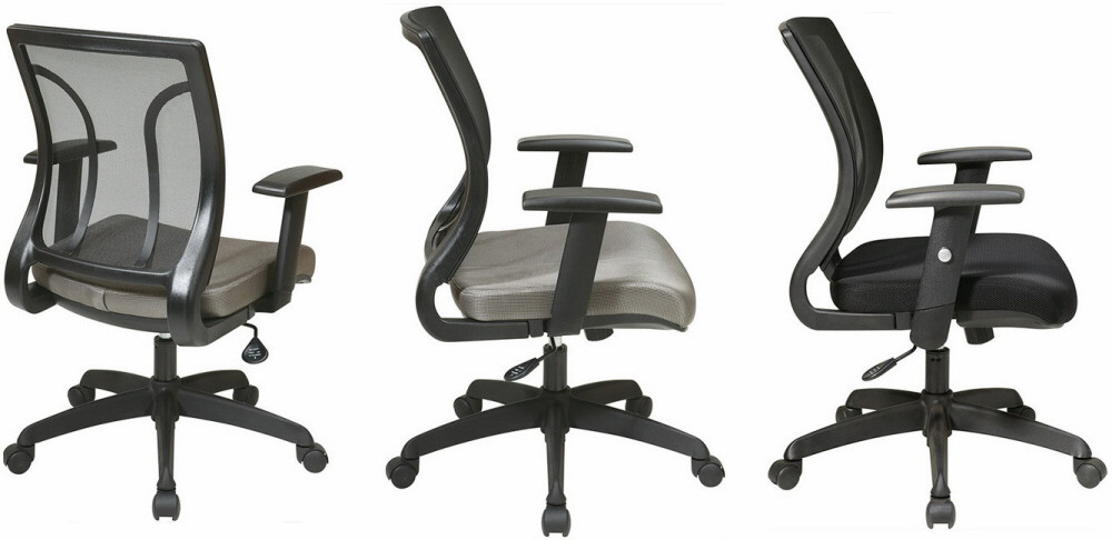 The Office Star EM50727 is a modern styled office chair with a breathable screen mesh backrest and a thick padded fabric mesh seat available in your choice of grey or black.